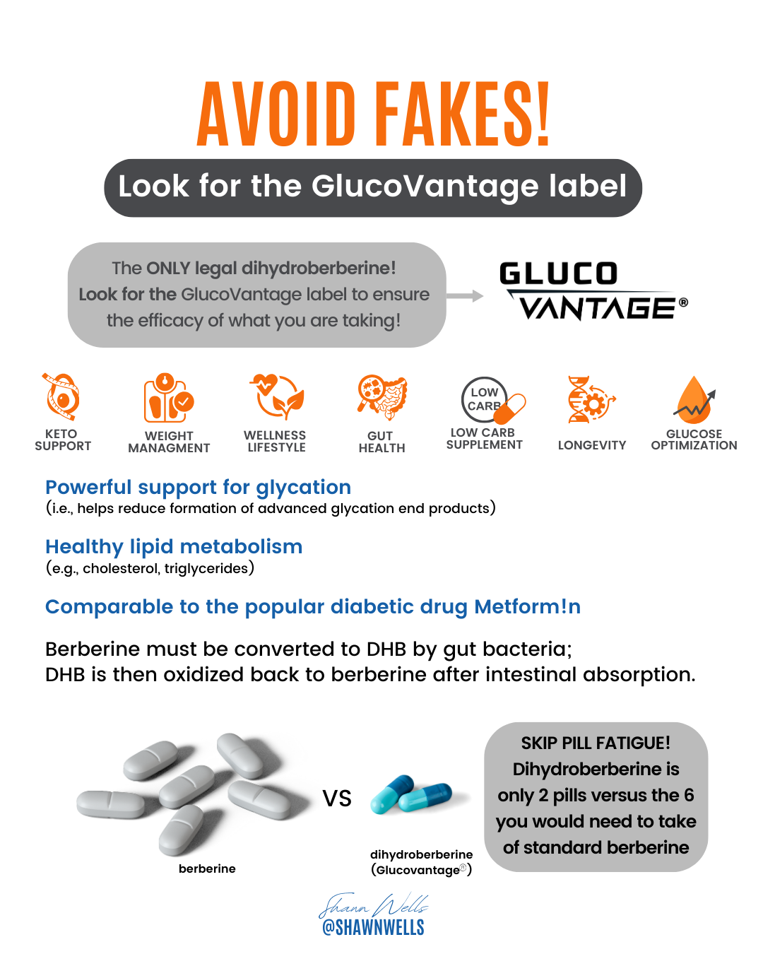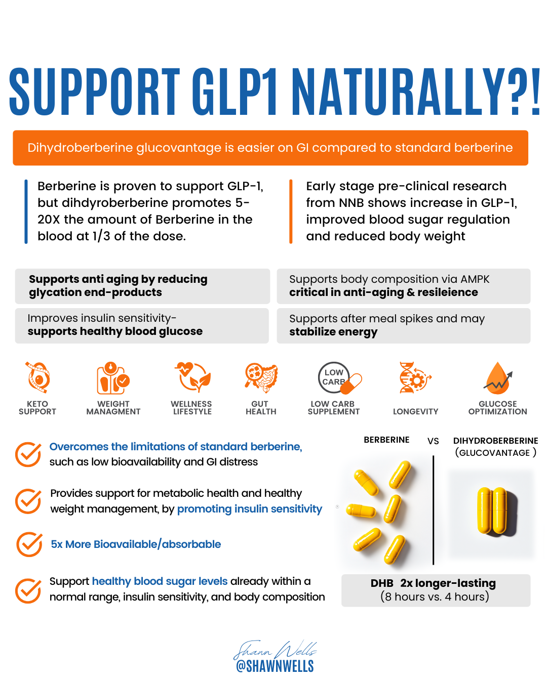 When it comes to natural GLP-1 support, GlucoVantage® (the patented form of dihydroberberine) is an ingredient I personally look for—and use—because of its proven bioavailability, low GI side effects, and consistent performance in both research and real-world settings.