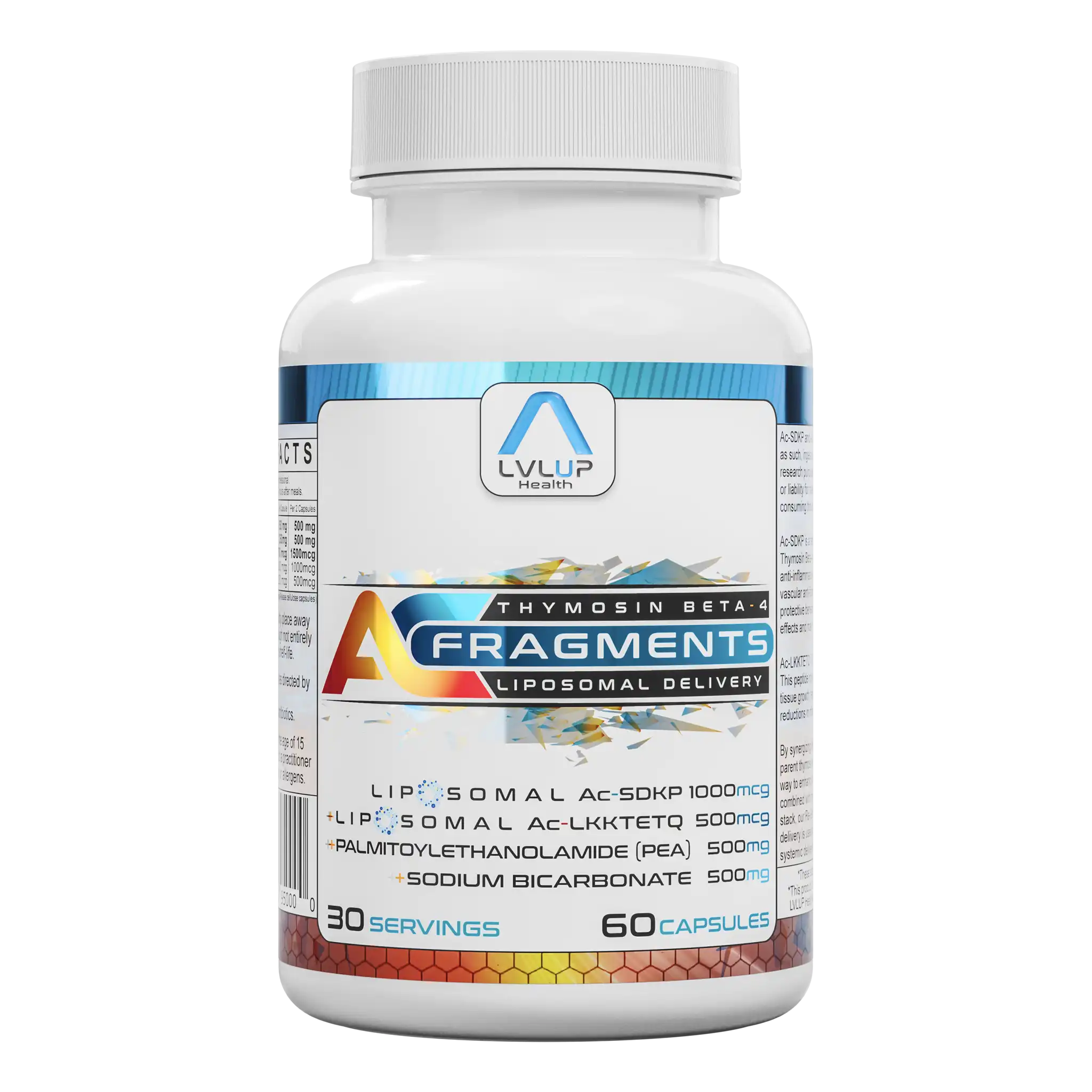 Supports tissue repair and recovery with TB4 peptide fragments delivered in a liposomal, pH-buffered system. PEA helps maintain nerve comfort and balanced immune signaling, while sodium bicarbonate aids absorption. Designed for active individuals needing daily resilience and repair support.