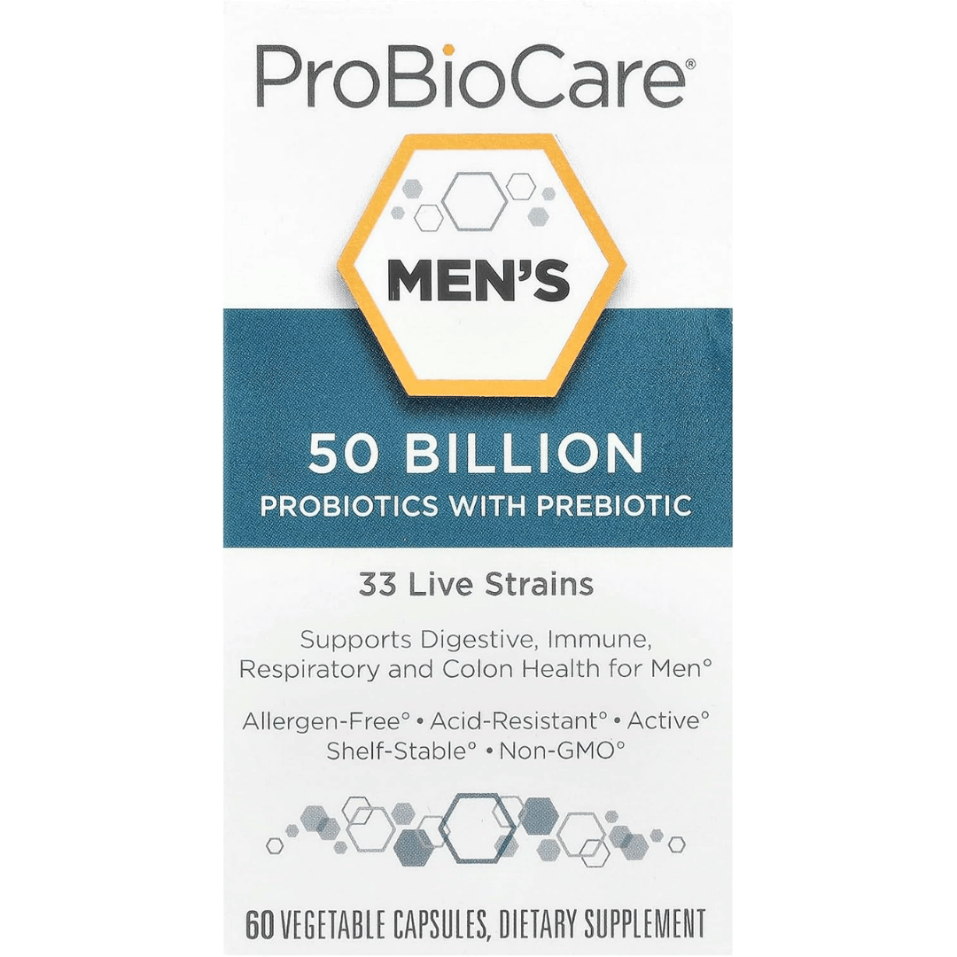 Supports men’s gut flora balance with 50B CFU probiotics for daily digestive comfort and regularity. Helps maintain microbiome and immune function, and may reduce occasional gas and bloating. Vegetable capsules for easy once-daily support.